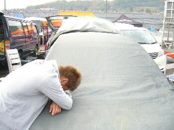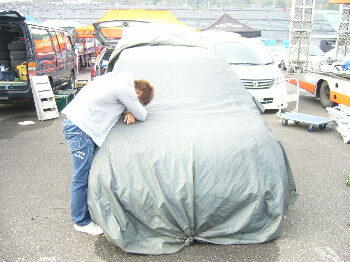 他の選手に、ドアミラーを貸し